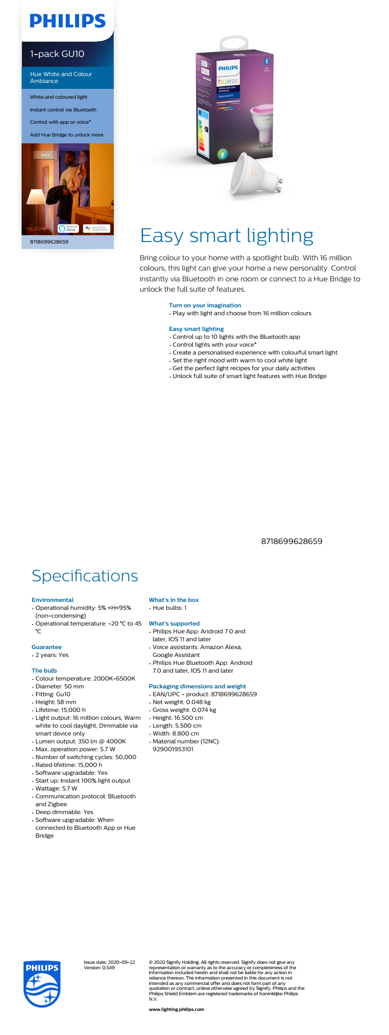 HUE Spot White and Color Ambiance 5.7W GU10 Philips hue