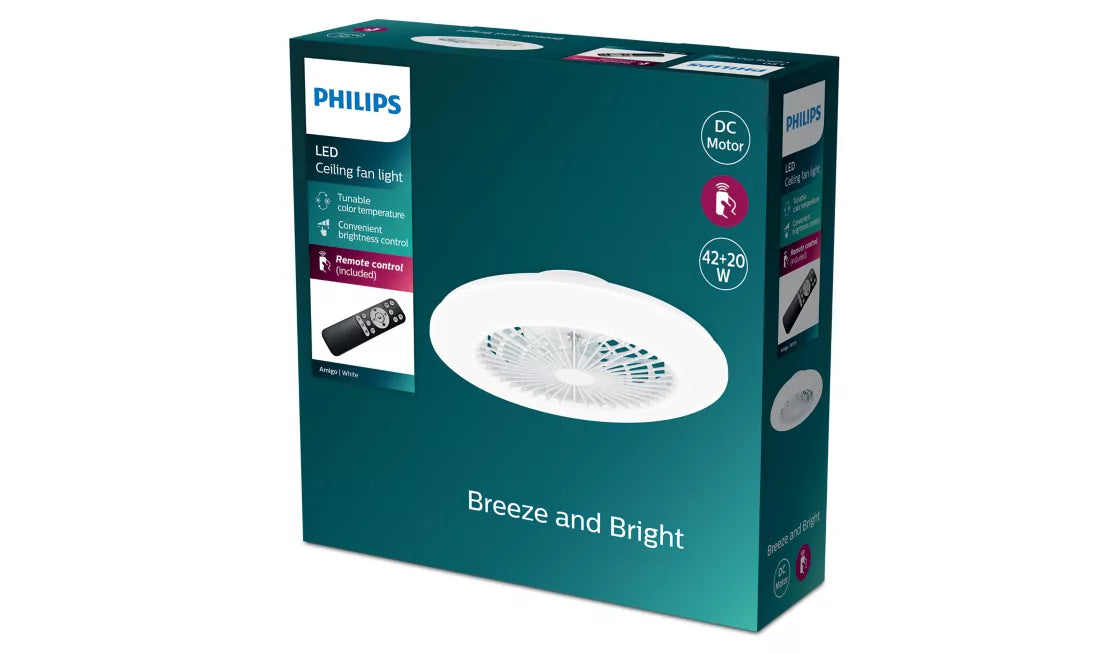 מאוורר התקרה Philips Amigo 60” משלב תאורה עוצמתית ואוורור שקט וחזק במוצר אחד מתוחכם, המיוצר על ידי Philips – מותג התאורה הגדול והאמין ביותר בעולם. הוא מציע עיצוב מודרני ונקי, שליטה מלאה מהשלט, וחוויית שימוש פרקטית ונעימה המתאימה לחדרי מגורים, חללים גדולים יותר, חדרי שינה מרווחים ומשרדים ביתיים.